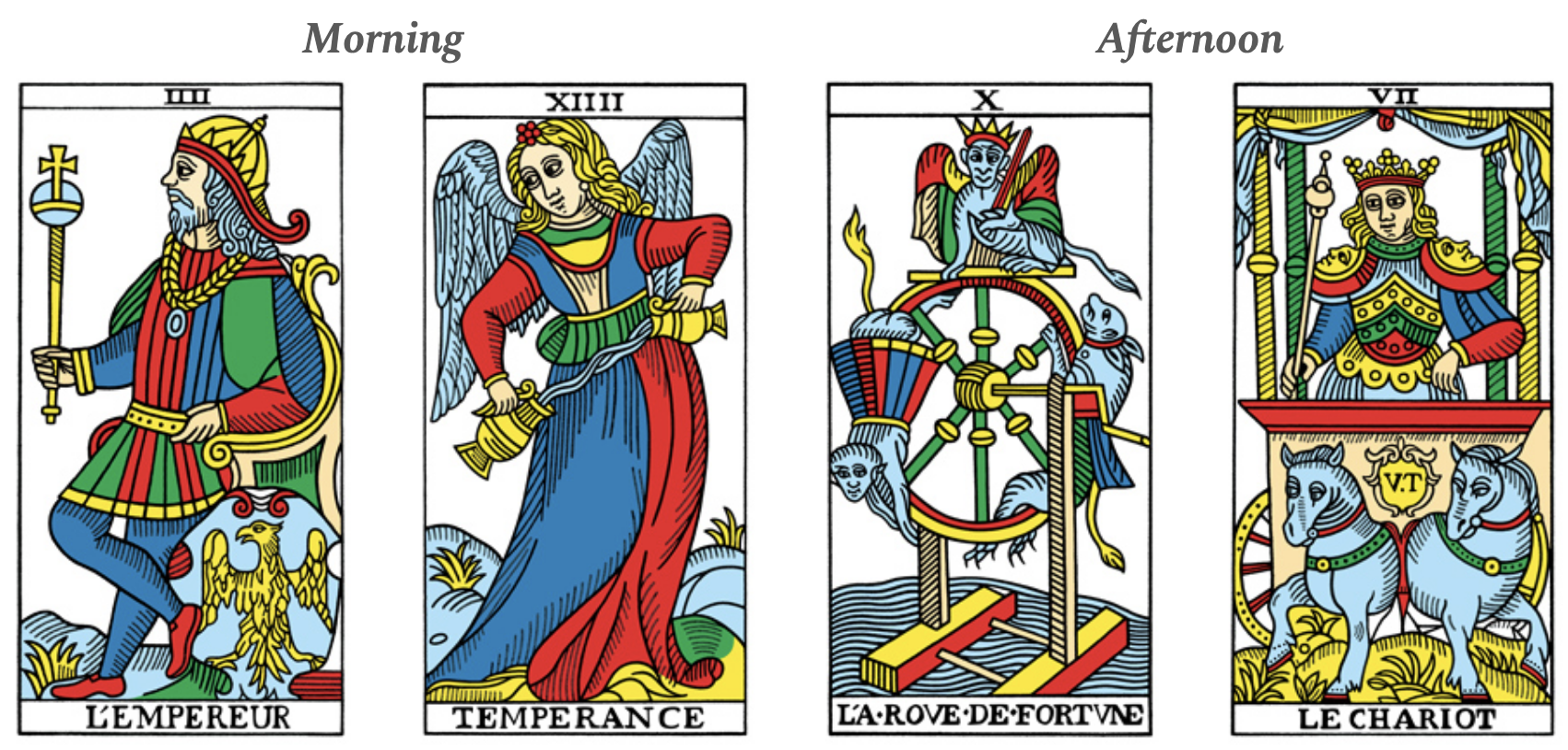 | XI. Strength, XIV. Temperance | Provisions A food item goes bad or water is depleted. |
